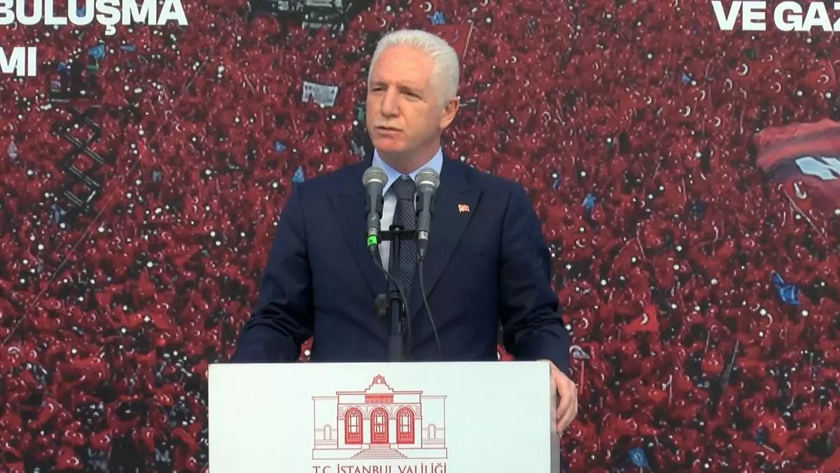 İstanbul Valisi Davut Gül,”15 Temmuz’u, sadece bir demokrasiye müdahale ya da sadece Türk Silalı Kuvvetleri’nin içine sızmış bir grubun bir darbe girişimi olarak değerlendiremeyiz. 15 Temmuz bir Türkiye’yi işgalle karşı karşıya getirme operasyonun bir parçasıydı. Belki 9 sene önce bunu çok rahat söyleyemeyenler olabilirdi ama dünyadaki gelişmeleri gördüğümüzde, hele hele yakın coğrafyamızdaki gelişmeleri gördüğümüzde taşların yerine oturduğunu çok rahat bir şekilde görüyoruz. Sayın Cumhurbaşkanımızın cesareti, dirayeti, milletimizin feraseti, duası, daha önemlisi Allah’ın takdiri. Allah istemezse hiçbir şey olmaz ama Allah takdir etti, bu millet bu devleti uçurumun kenarından aldı” şeklinde konuştu.