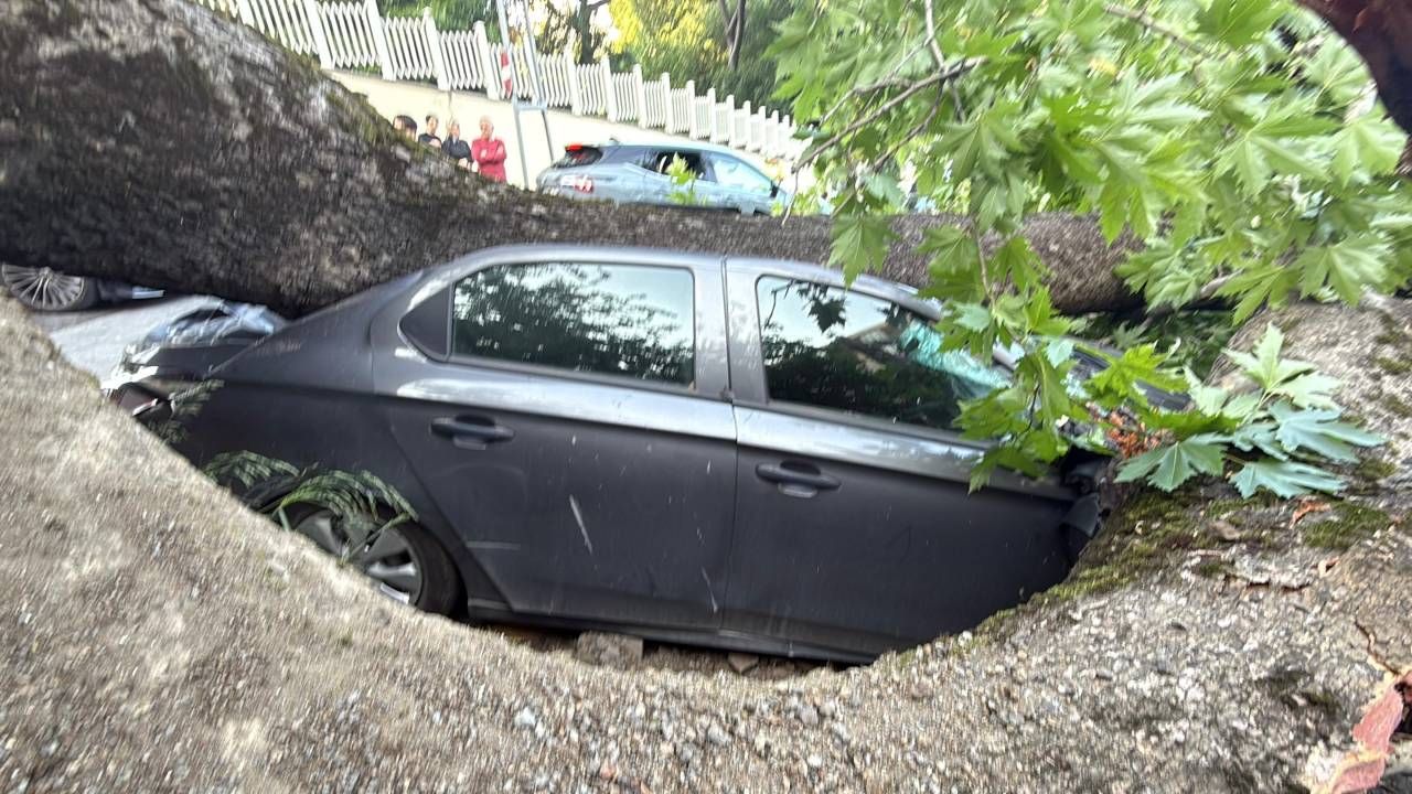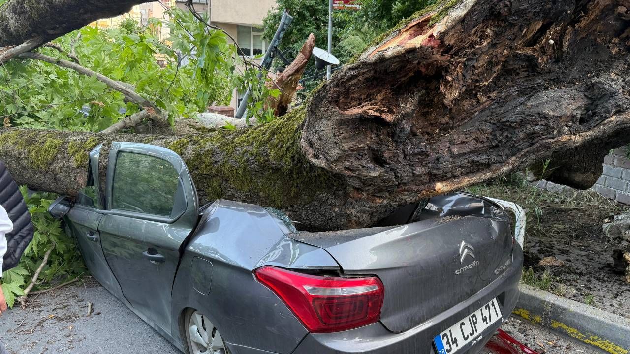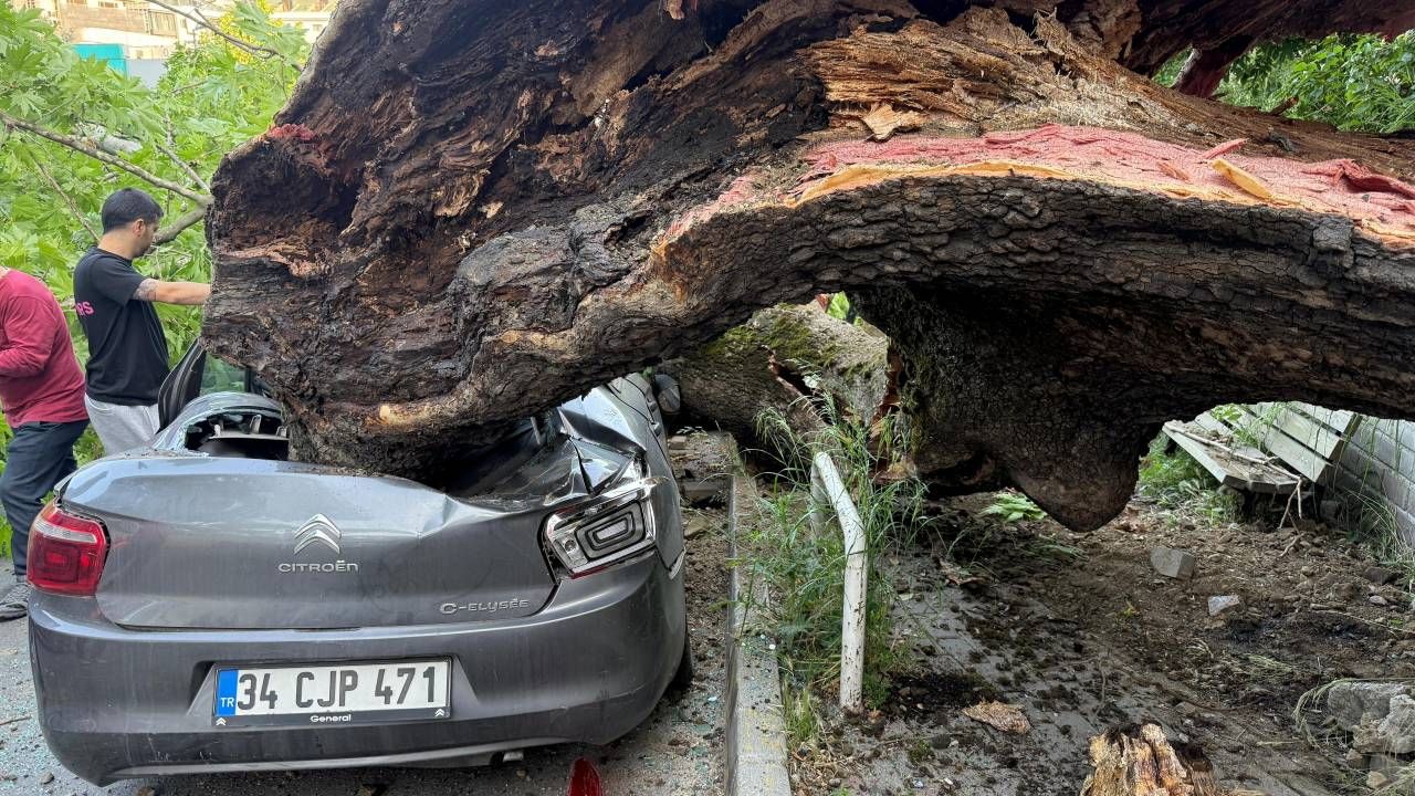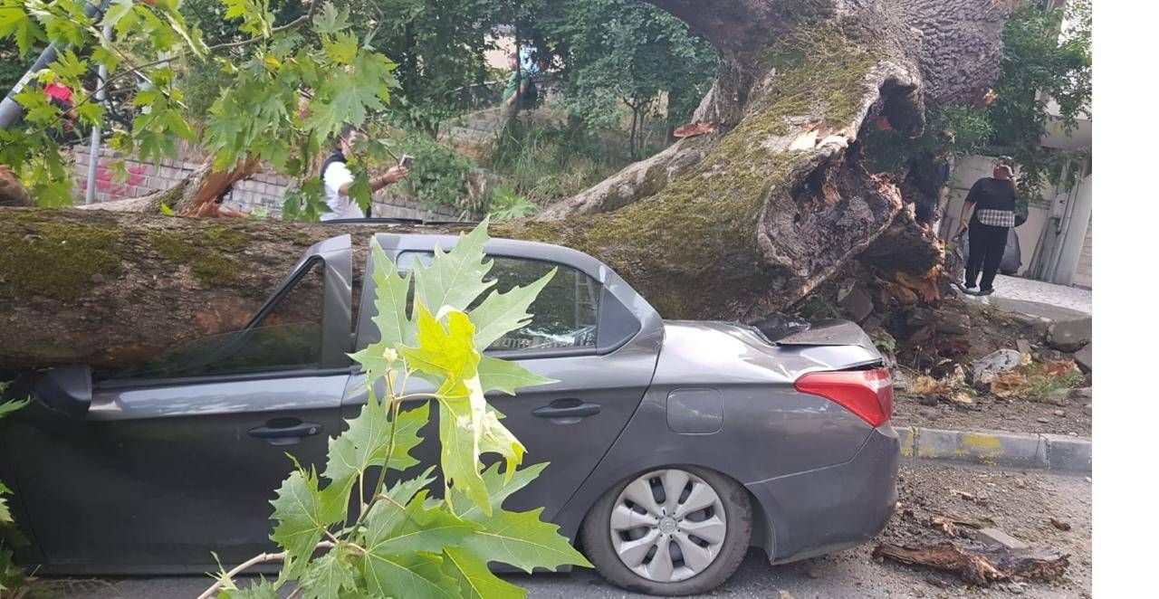 Aracı hasar gören Ömer Bakacak, “Aracım park halindeydi. Dün akşam bırakmıştık. Altı çürümüş ağacın boşalmış. Ağacın tarihinin 150 yıllık diyorlar. Zamanında bu binada da oturdum baya eski bir ağaç. Ağacın altında gözüken 3 araç var” şeklinde konuştu.