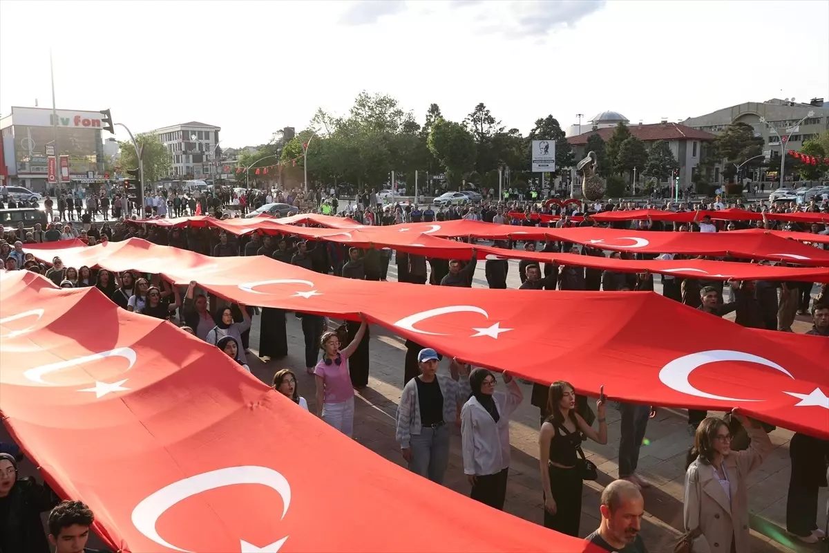 Erzincan’da da binlerce vatandaş 600 metre uzunluğundaki Türk bayrağıyla Halitpaşa Caddesi boyunca yürüdü.