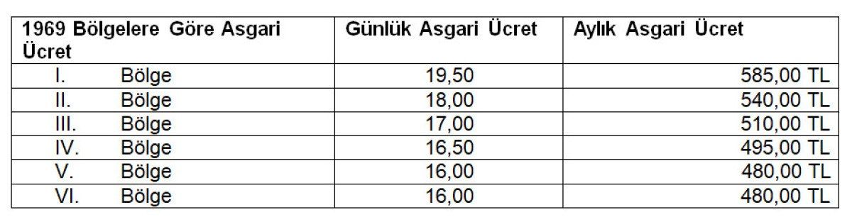 1969 YILI: BÖLGESEL ASGARİ ÜCRET UYGULANIYORDU