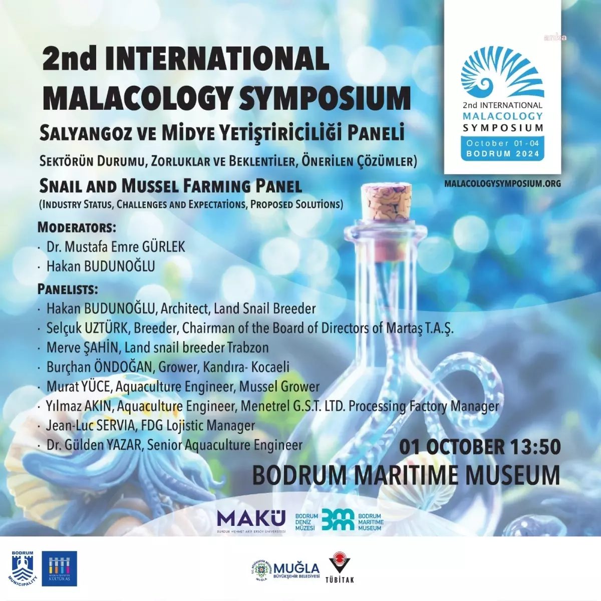 (MUĞLA)- Türkiye’de ilk defa, Bodrum Belediyesi ev sahipliğinde 2022 yılında gerçekleştirilen Uluslararası Malakoloji Sempozyumu’nun ikincisi, yine Bodrum Belediyesi ev sahipliğinde düzenlenecek. Etkinlik, Bodrum Deniz Müzesi ve Burdur Mehmet Akif Ersoy Üniversitesi Bucak Sağlık Yüksekokulu iş birliğinde 1-4 Ekim 2024 tarihleri arasında Bodrum Deniz Müzesinde gerçekleşecek.