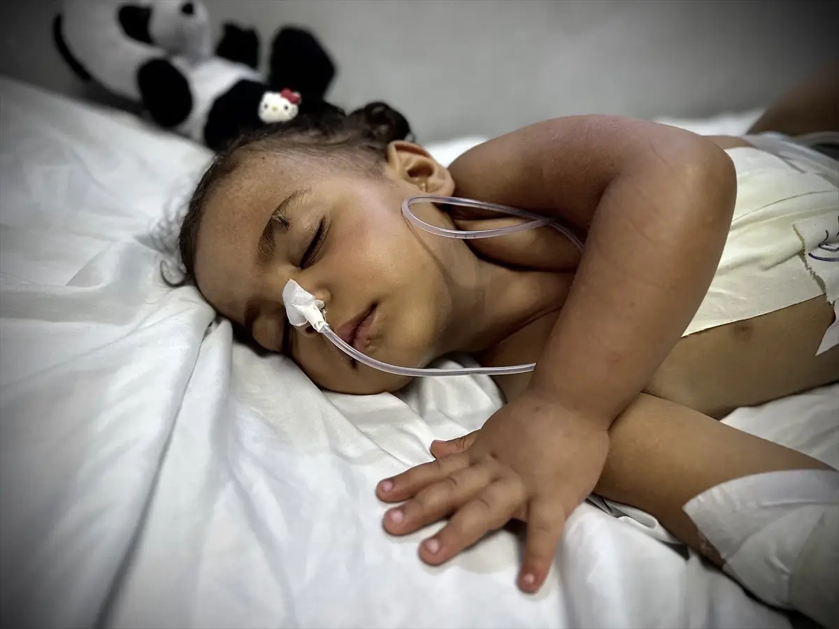 İsrail ordusunun Gazze Şeridi’nin güneyindeki Han Yunus kentine düzenlediği saldırıda iç organları delinen ve acil tedaviye ihtiyaç duyan 2,5 yaşındaki Cumana Neccar, yaşam mücadelesi veriyor.