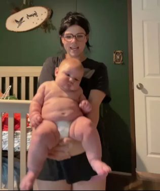 Mugele’nin TikTok’ta paylaştığı ve 20 milyondan fazla izlenen videoda, oğlunu kucağında taşırken “4 aylık, yüzdelik dilimin dışında bir bebek – 10 kiloluk saf kas” yazılı bir not da yer alıyordu.