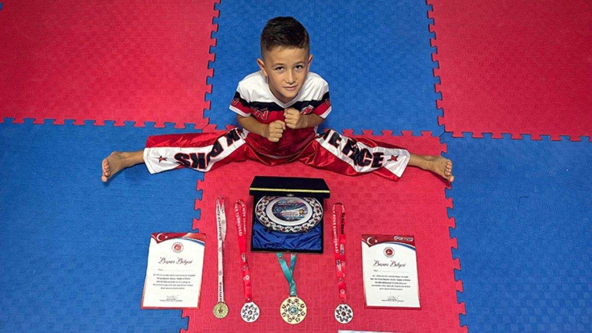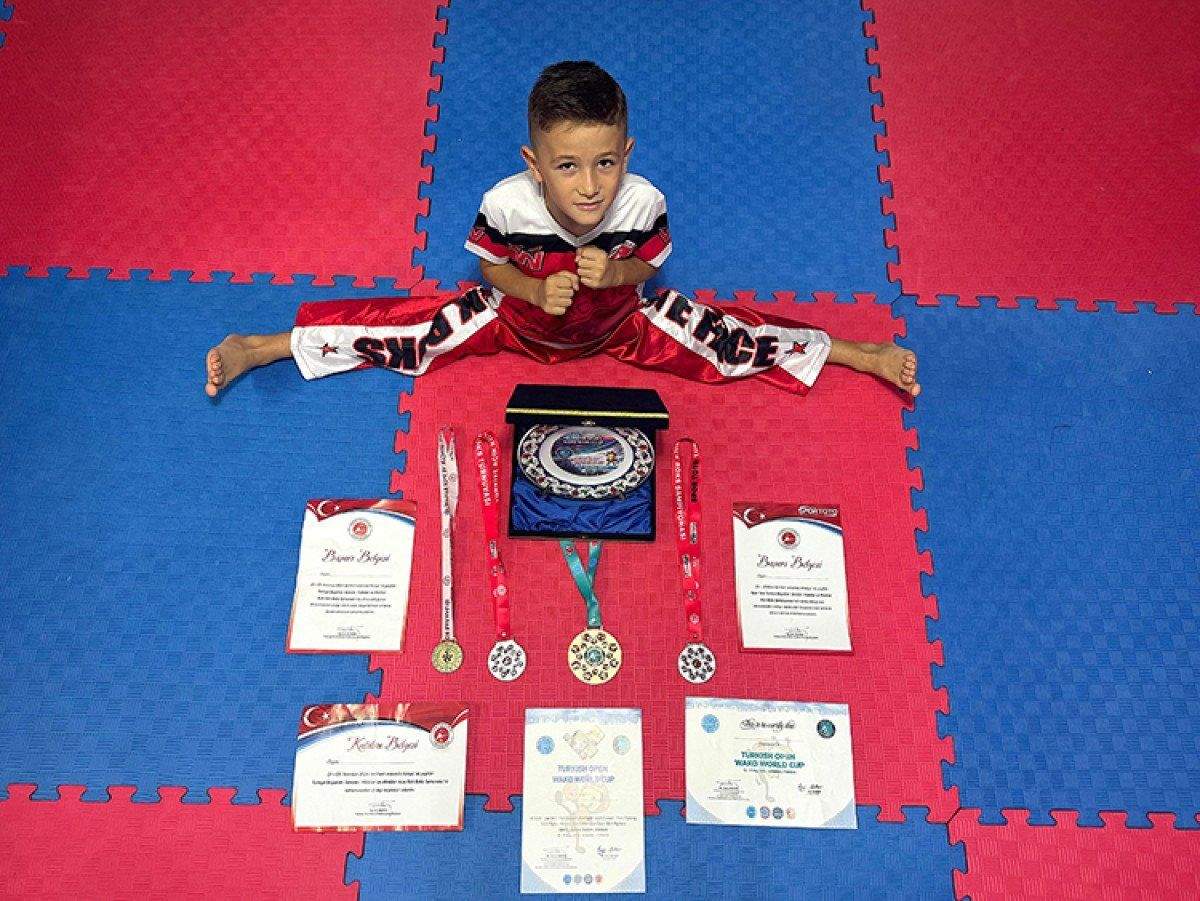 6 yaşındaki kick boksçu Ahmet Batur’dan 1 yılda 3 madalya