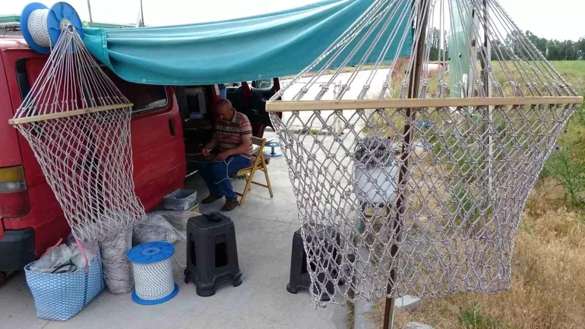 Kütahya’da yaşayan 65 yaşındaki Ahmet Kaptan, 25 yıl önce başladığı hamak üretimiyle kendi markasını oluşturdu. Doktor tavsiyesiyle başladığı meslekte adeta bir usta haline gelen Kaptan, ördüğü hamaklarla hem geçimini sağlıyor hem de tatilcilerin vazgeçilmezi oluyor.