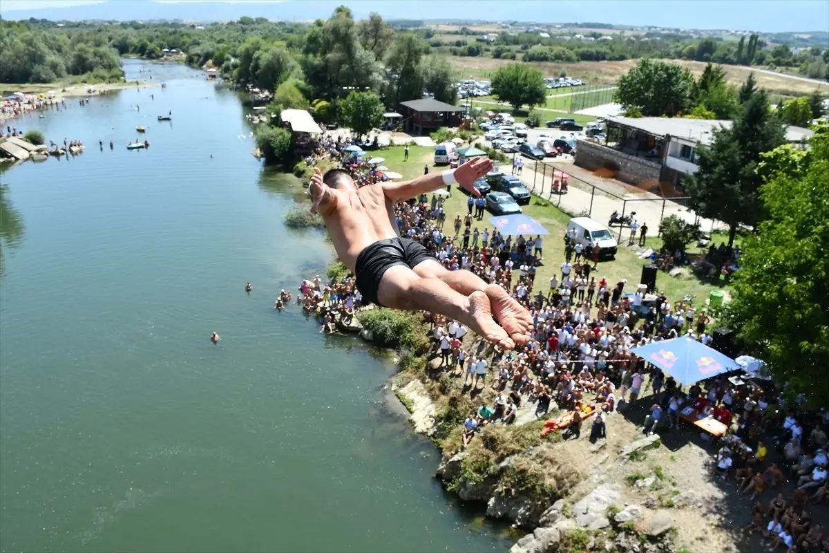 Yakova'da gerçekleştirilen geleneksel atlama yarışında sporcular 22 metreden suya atladı.
