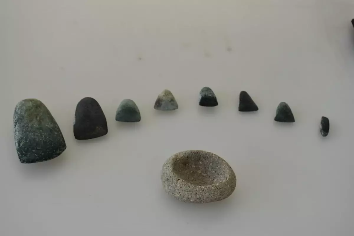 Serpantin taşının Ege Bölgesi’ne özgü olduğunu belirten Doç. Dr. Derin, “Çok sert bir taştır. Birçok aleti, bu taşları kullanarak yapabiliyorlar. Balta başı, kesici ve havan gibi buluntularımız, günümüzden 8 bin 200 yıl öncesine ait. Bütün bu aletler, günlük yaşam içinde yoğun bir üretimin varlığını gösteriyor. Çalışan bir topluluk. Egeli ilk toplumun bu özelliğini ortaya koyuyor” dedi.