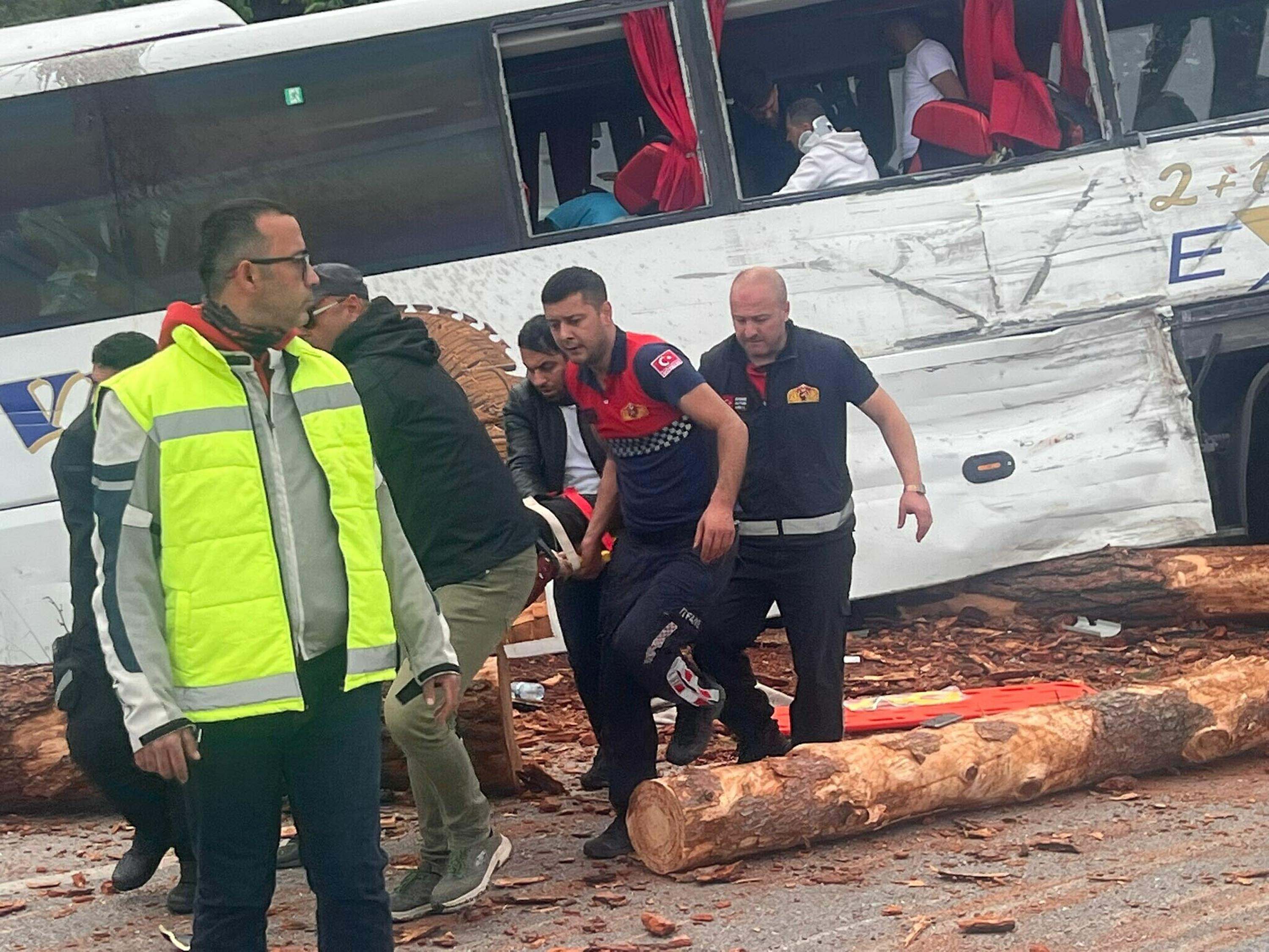 Kaza, dün saat 13.00 sıralarında Çanakkale-Ezine kara yolu Anıtyağ mevkisinde meydana geldi. Ezine’den Çanakkale yönüne giden Oktay Batır’ın kontrolünü yitirdiği 33 ANK 274 plakalı tomruk yüklü kamyon, refüjü geçerek karşı şeride devrildi. Kamyonun kasasındaki tomrukların yola savruldu. Bu sırada Ezine yönüne giden 34 DCJ 400 plakalı otomobil ile İstanbul-İzmir seferini yapan içerisinde 22 yolcu ve 3 personel bulunan Truva Turizm’e ait 17 AHT 624 plakalı yolcu otobüsü, tomruklara çarpıp, savrularak şarampole girdi.