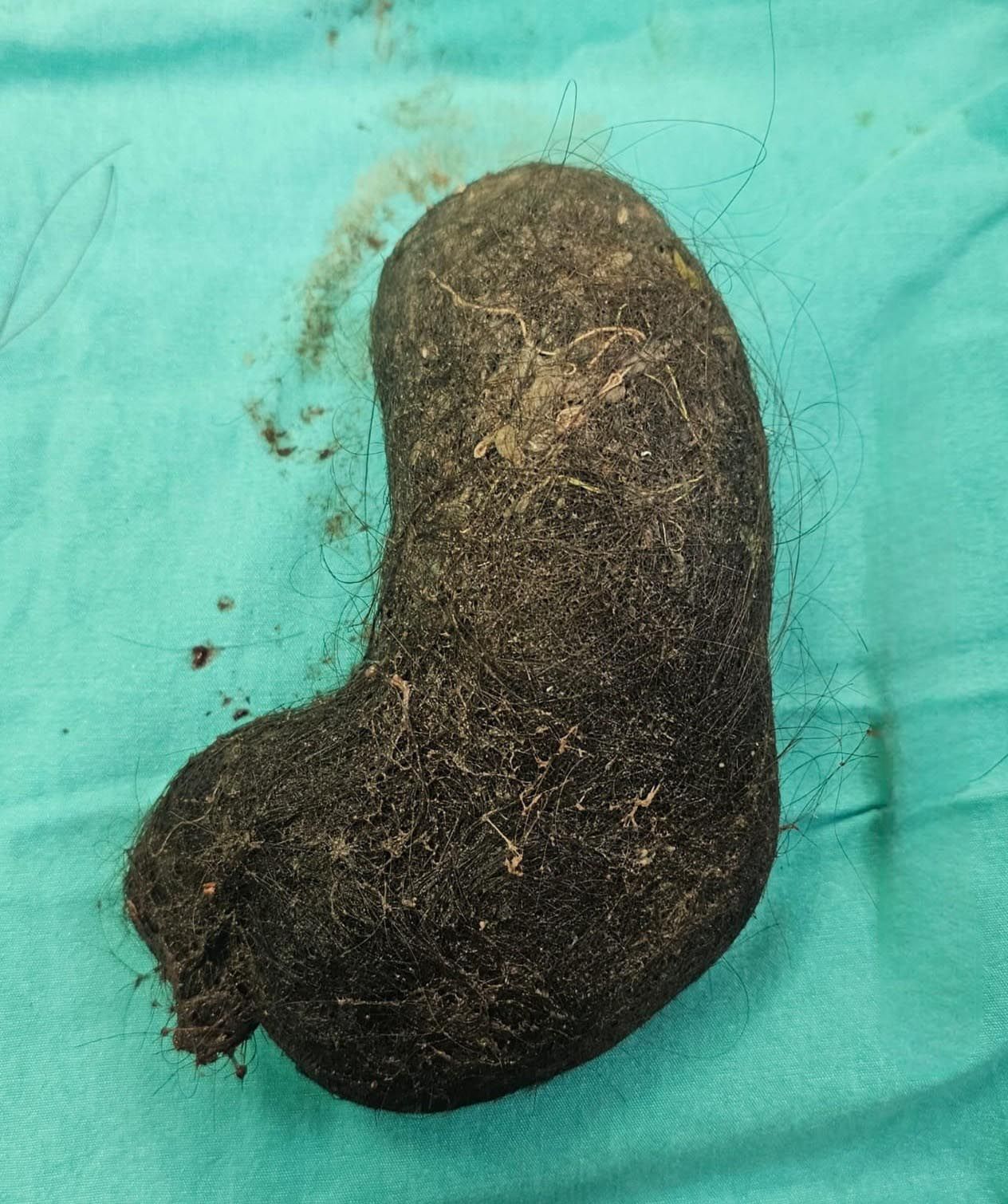 Eskişehir Şehir Hastanesi’nde yapılan endoskopi ve radyolojik inceleme sonucunda midesinde büyük bir kitle tespit edilen B.G., Çocuk Cerrahisi uzmanları Op. Dr. Berkay Tekkanat ve Op. Dr. İbrahim Yıldırım tarafından acilen ameliyata alındı. Operasyonda, mideyi tamamen dolduran büyük bir saç yumağı başarıyla çıkarıldı.