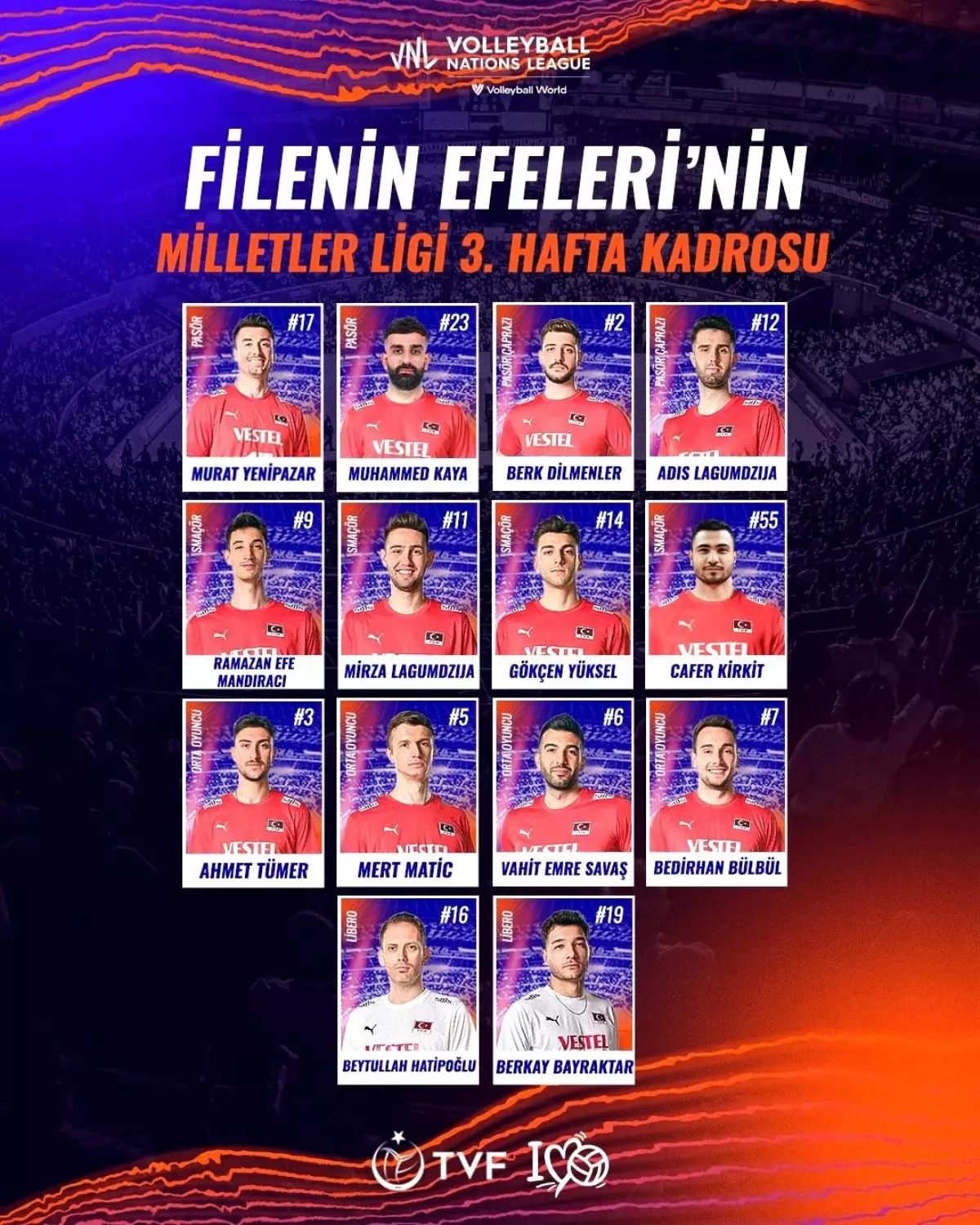 2025 FIVB Voleybol Milletler Ligi 3. hafta müsabakaları için Japonya’ya giden A Milli Erkek Voleybol Takımı’nın kadrosu açıklandı.