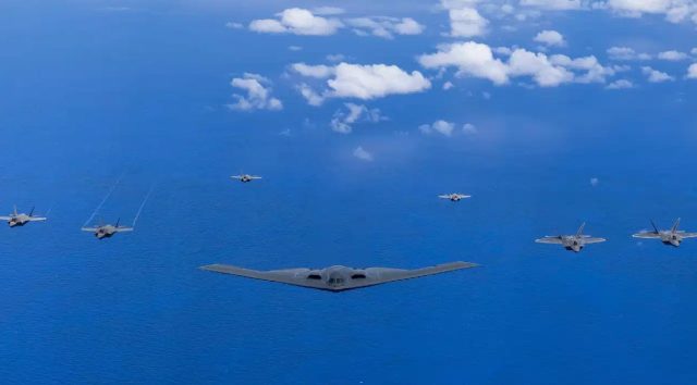 Haberlerde, uçuş takip verilerine ve hava trafik kontrolüyle yapılan sesli iletişime göre, Missouri eyaletindeki Whiteman Hava Kuvvetleri Üssü’nden kalkan 6 adet B-2 gizli bombardıman uçağının Guam’daki ABD Hava Kuvvetleri üssüne doğru yolda olduğunun görüldüğü belirtildi.