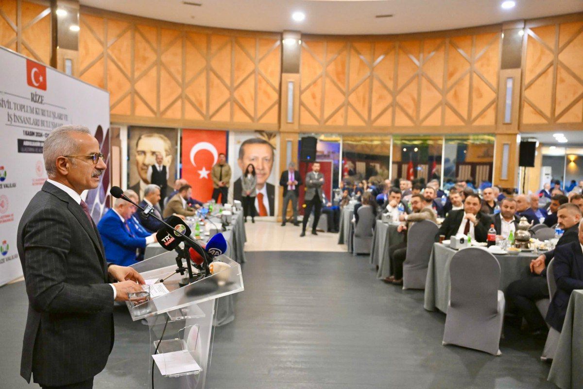 Bakan Uraloğlu, burada yaptığı konuşmada, “Bugün Çamlıhemşin Tünelimizdeki ışık görme töreni vesilesiyle Rize’ye geldik. Buralara kadar gelmişken sivil toplum kuruluşlarımızla, kanaat önderlerimizle hasbihal etmeden, ihtiyaç ve taleplerini dinlemeden gitmek olmaz dedik. Deneyimleriniz, bilgileriniz ve önerileriniz, kamu politikalarının oluşturulmasında ve uygulanmasında büyük bir öneme sahip. Bu yüzden, sizlerin sesine kulak vermek, görüş ve önerilerinizi dinlemek, sizlerle iş birliği içinde olmak için bir aradayız” ifadelerini kullandı.