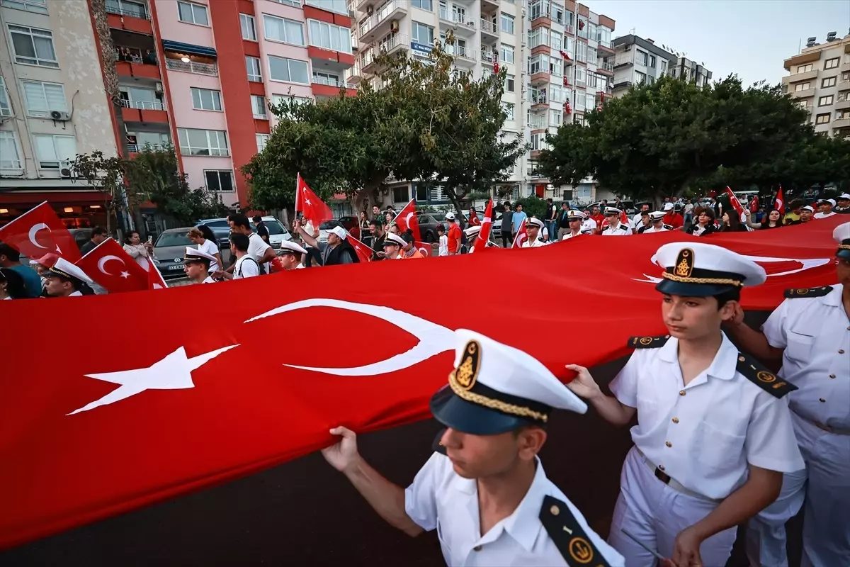 Mersin’de 100 metre Türk bayrağıyla yürüyüş yapıldı