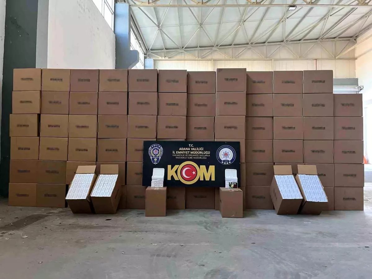 Adana’da 5 milyon TL değerinde 8 milyon kaçak makaron ele geçirildi, 2 şüpheli gözaltına alındı.