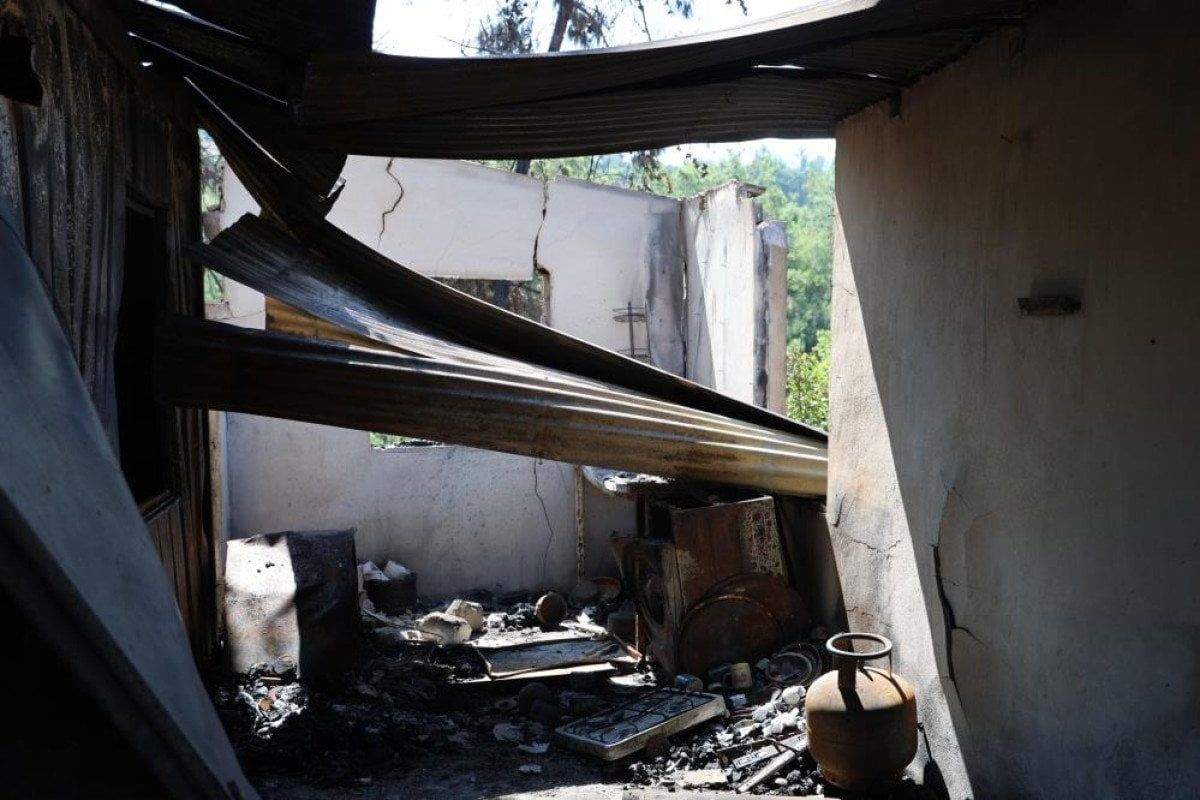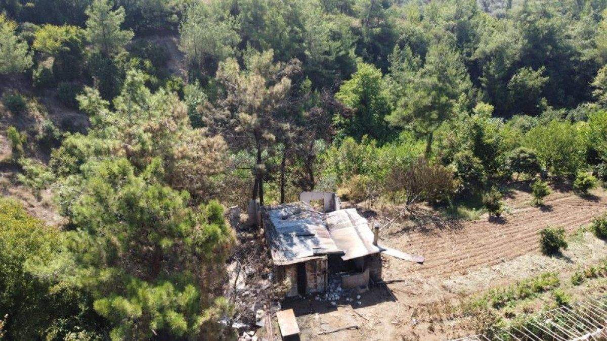 45 hektarlık alanın zarar gördüğü yangında, bazı evler küle döndü. Yanan ev ve küle dönen ormanlık arazi havadan görüntülendi.