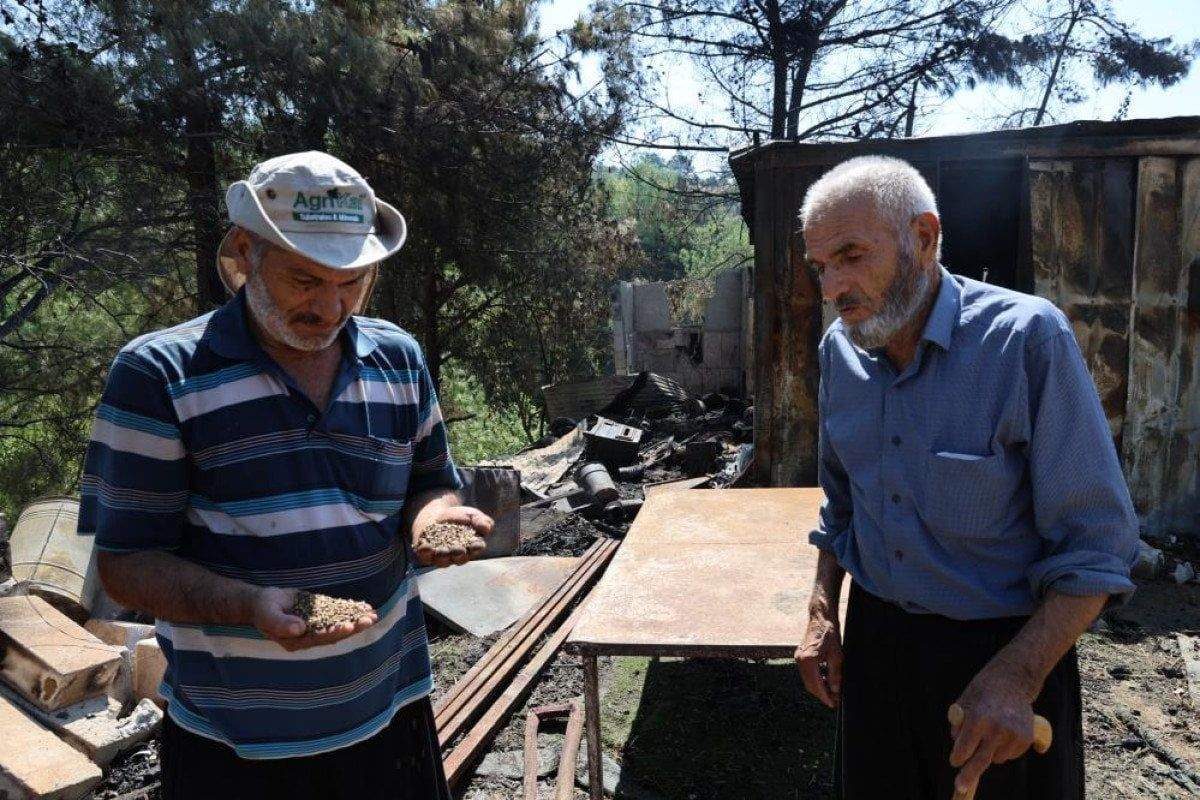 Bütün birikiminin yandığını belirten İbrahim Avcı, “Yangında eşimi ziyarete gitmiştim. ‘Yangın var’ diye aradılar ben gelemedim. Çocuklar da canını zor kurtarmış. Çardağımız, evimiz kül oldu. Tohumluk ve kışlık buğdayım vardı, hepsi gitti.” diye konuştu.