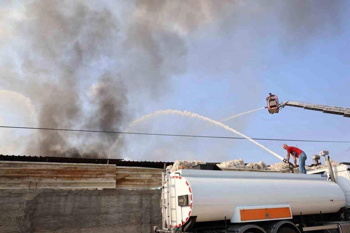 Adana’da geri dönüşüm fabrikasında yangın çıktı. Yangın sebebiyle fabrikanın çatısı çökerken itfaiye ekiplerinin yangına müdahalesi devam ediyor.
