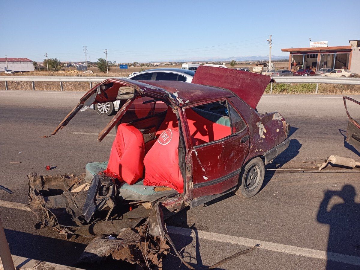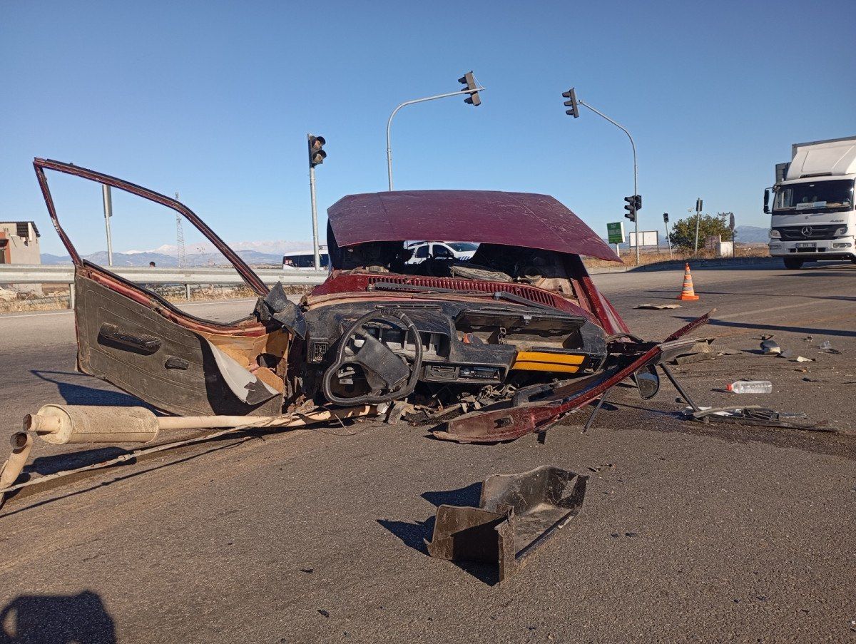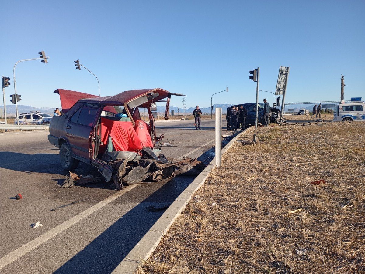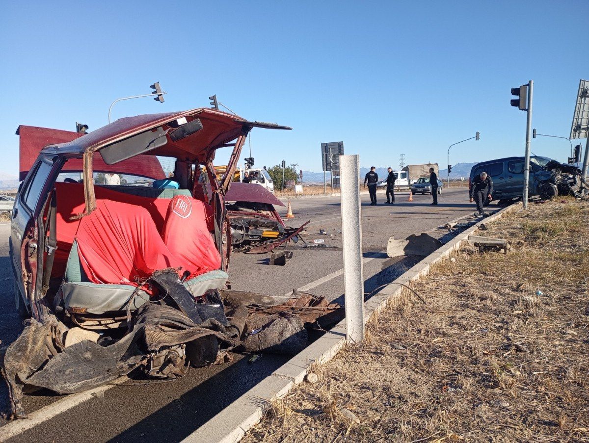Otomobil ikiye bölünürken hafif ticari araç da trafik levhasına çarptı. Bu sırada Gamber Obuz ile yanındaki Elif Obuz araçtan fırladı.