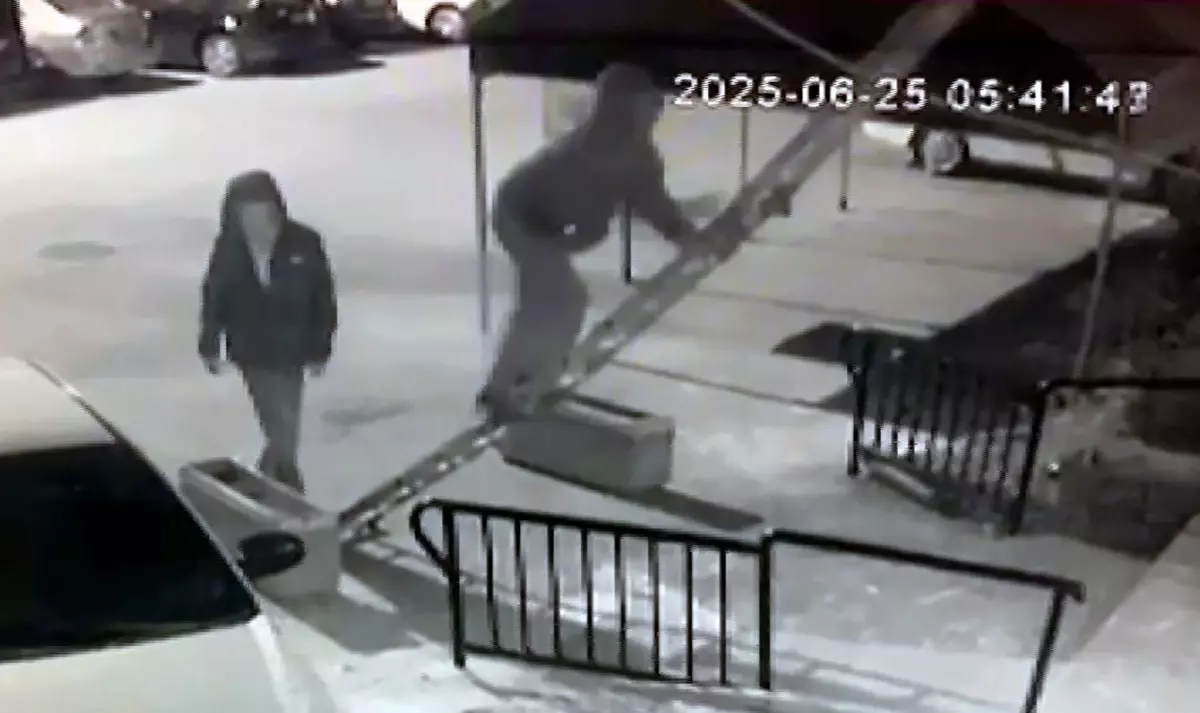 ADANA’da müzisyen Cem A.’nın (32) 1’inci kattaki dairesinin balkonuna seyyar merdiven dayayan 2 şüpheli, yatağın altındaki 25 gram altın ile 1500 doları çaldı. Şüphelilerin, merdiveni de yanlarına alıp kaçtığı anlar, güvenlik kamerasına yansıdı.