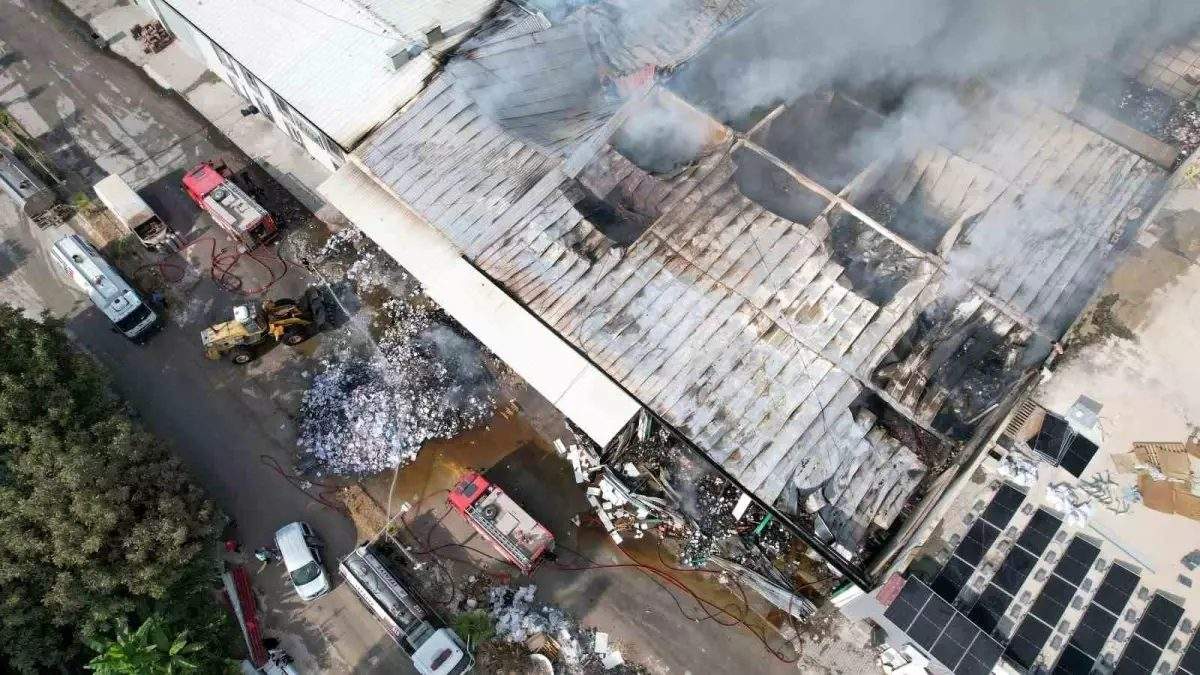 Adana’da kitap dağıtım deposunda çıkan yangında 10 iş yeri küle döndü. İtfaiye ekiplerinin soğutması devam ederken yangının oluşturduğu tahribat havadan görüntülendi.