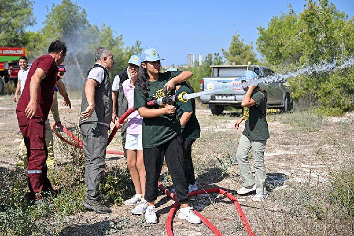 Bu çerçevede, Sarıçam ilçesi Balcalı Orman İşletme Şefliği’ne ait ormanlık alanda öğrenciler, ağaç türlerini yakından tanıma fırsatı buldu ve orman ekosistemi üzerine çeşitli eğitimlere katıldı. Eğitimlerin ardından öğrencilere yönelik bir yangın söndürme tatbikatı düzenlendi. Tatbikat senaryosuna göre, yangın ihbarı alındıktan sonra arazözle olay yerine intikal eden öğrenciler, su hortumları kullanarak yangına başarılı bir şekilde müdahale etti.