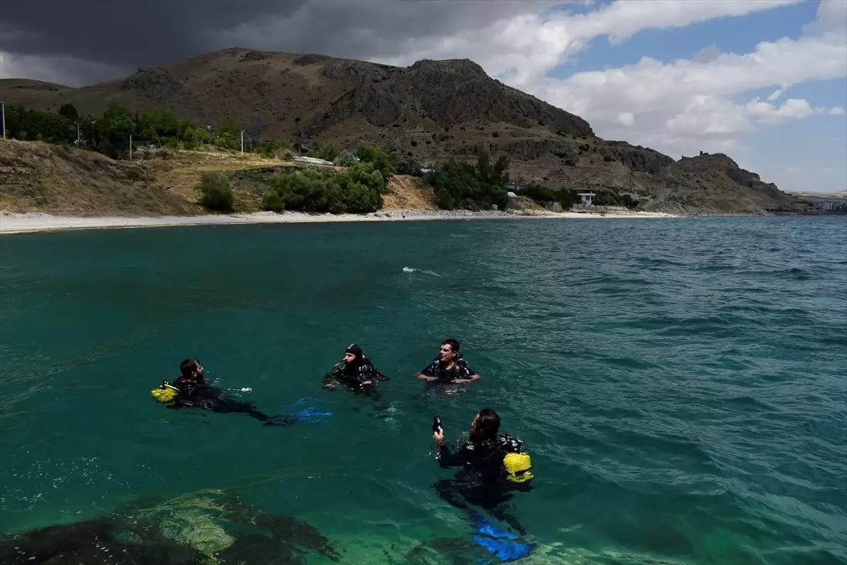 Bitlis'in Adilcevaz ilçesinde 50 kişiye dalgıçlık eğitimi veriliyor. Van Gölü'nde keşif yapılıyor.