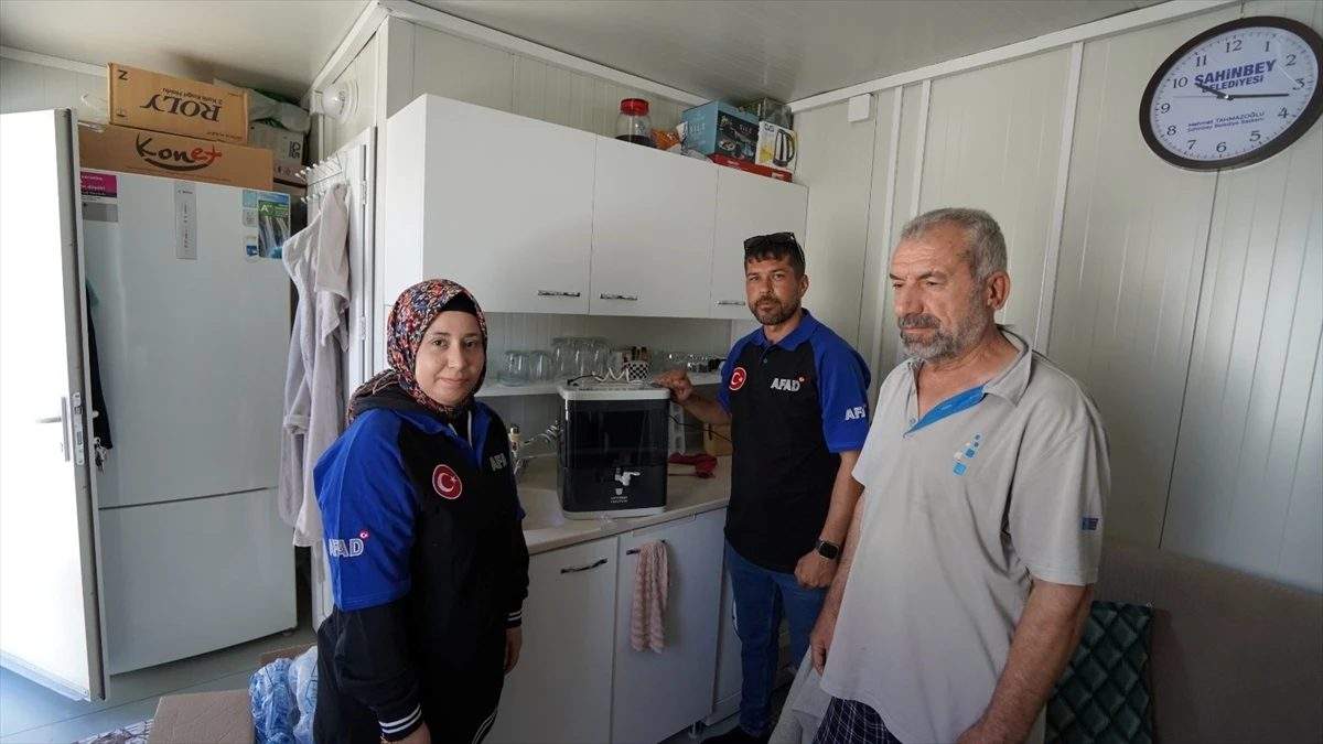 Adıyaman’da konteyner kentte hayatını sürdüren afetzedelere portatif su arıtma cihazı dağıtıldı.