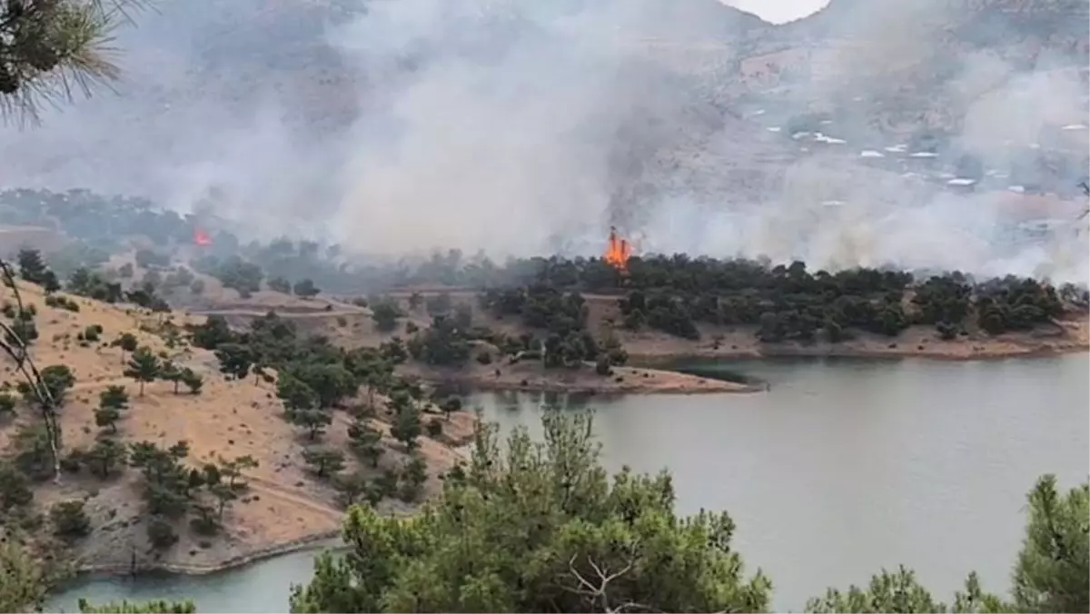 Adıyaman'da çıkan orman yangınına itfaiye ve köylüler müdahale ediyor.