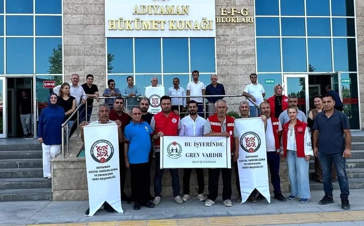 Adıyaman’da bir araya gelen Koop-İş üyeleri, sosyal yardımlaşma vakfı işçilerinin kamu protokolü kapsamına alınmaması nedeniyle greve çıktı.