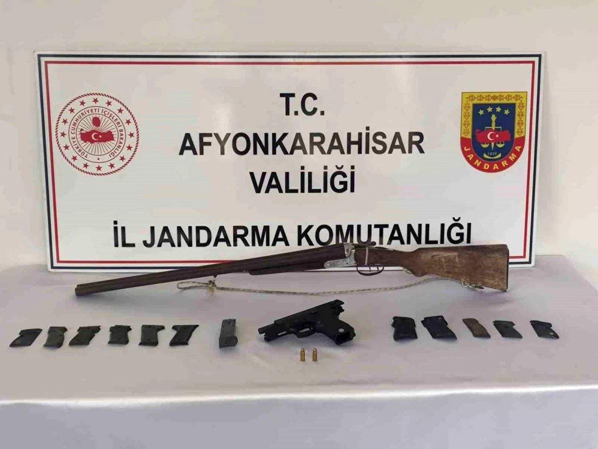 Edinilen bilgilere göre, Afyonkarahisar İl Jandarma Komutanlığı ekipleri kent merkezine bağlı Değirmendere köyünde ikamet eden A.G. isimli şahsın evine atölye kurarak silah imalatı yaptığı bilgisini aldı. Ekipler baskın yaptıkları atölyede şahsın silah tamiri ve kurusıkı tabanca namlusu açtığı, ayrıca silah alım satımı yaptığını tespit etti. Operasyonda şahıs gözaltına alınırken, ruhsatsız tabanca, ruhsatsız av tüfeği, 11 silah kabzası ve 2 mermi ele geçirdi. – AFYONKARAHİSAR