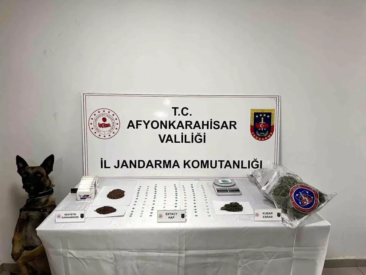 Edinilen bilgilere göre, Afyonkarahisar İl Jandarma Komutanlığına bağlı ekipler Çayırbağ beldesinde ikamet eden H.K. isimli şahsın çeşitli yollardan temin ettiği uyuşturucu maddeleri satacağı yönünde bilgi aldı. Ardından şahsın evine baskın düzenleyen ekipler eğitimli narkotik köpekleri ile yaptığı aramada 106 adet extacy uyuşturucu hap, 237 gram esrar, 2 gram skunk, 3 gram extacy kırıntısı,