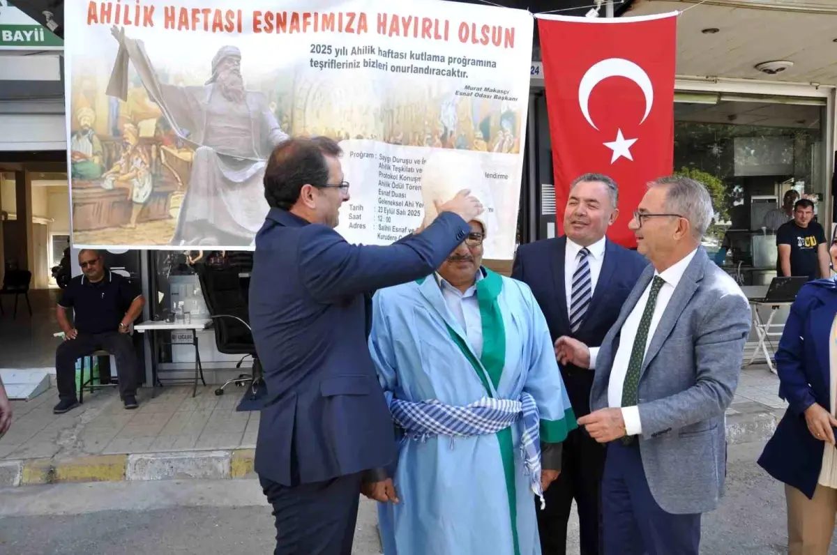 Kaymakam Ali Güldoğan ise konuşmasında, “Ahiliğin kültürümüzdeki yerini çok iyi biliyoruz. Kardeşlik, birlik ve dayanışmanın sembolü olan Ahilik ruhunu yaşatan tüm esnaflarımızın Ahilik Haftası kutlu olsun” ifadelerini kullandı.