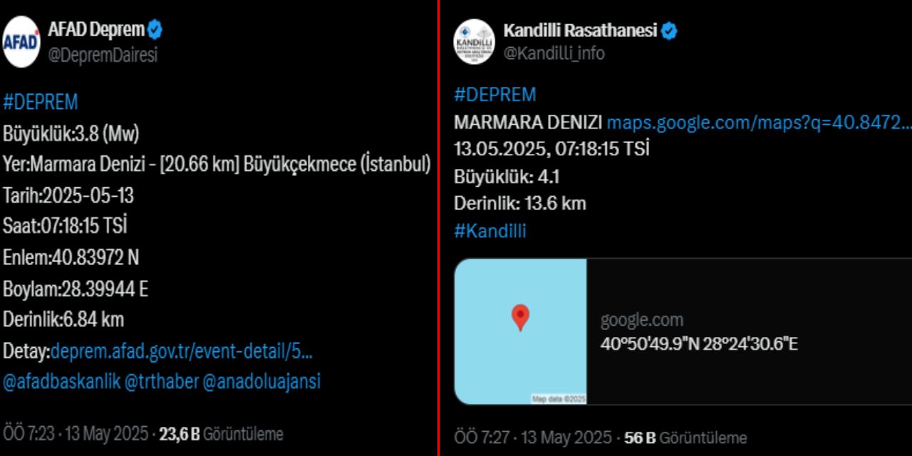 Sabah 07:30 sularında Marmara Denizi, Büyükçekmece açıklarında meydana gelen depremin şiddeti AFAD tarafından 3.8, Kandilli Rasathanesi tarafından ise 4.1 olarak açıkladı.