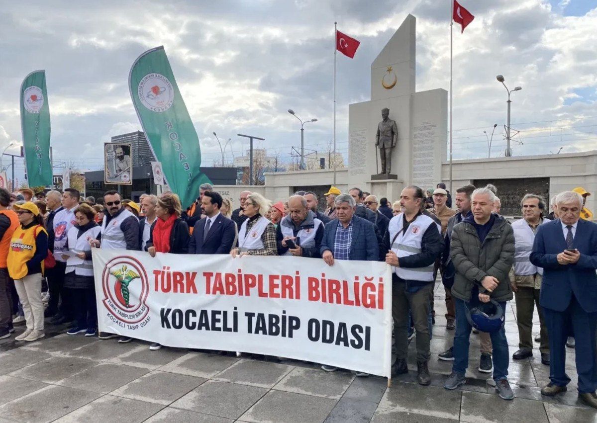 Döviz ve pankartlarla toplanmaya başlayan hekimler, basın açıklaması yapacak.