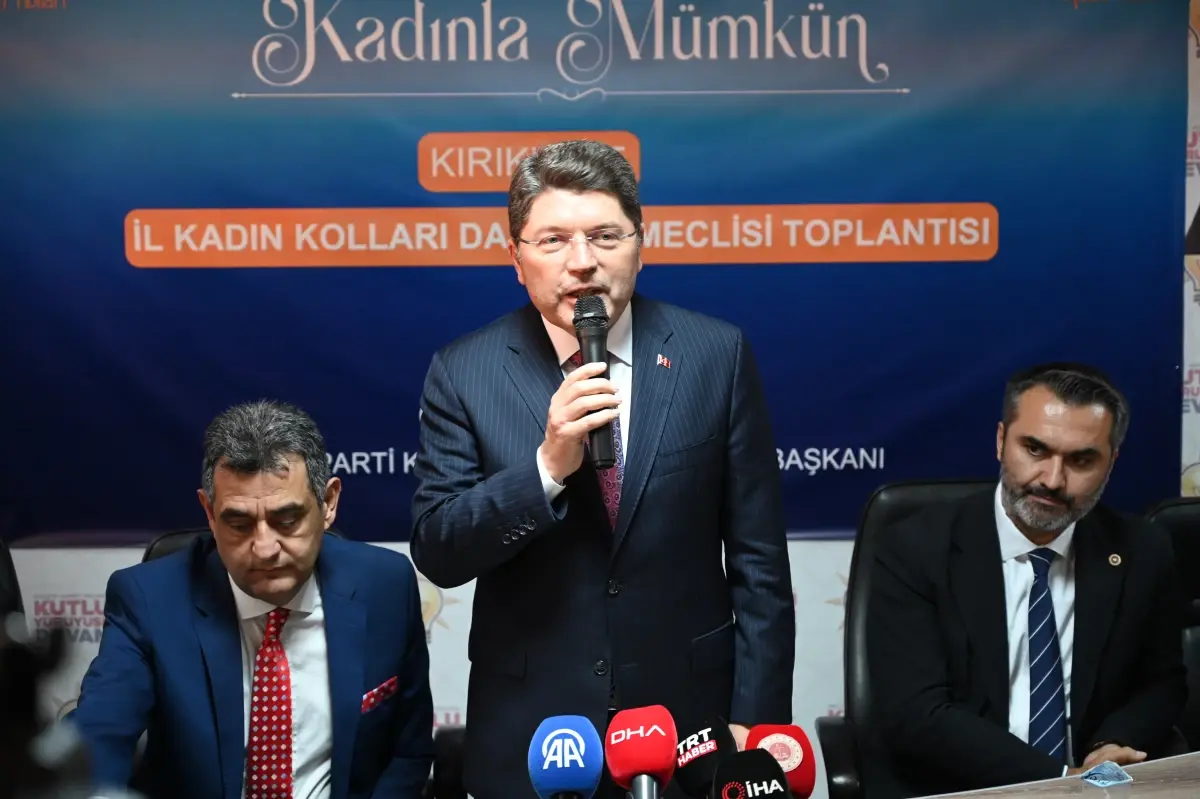 Adalet Bakanı Yılmaz Tunç, Kırıkkale ziyareti kapsamında AK Parti İl Başkanlığı’nı ziyaret etti. İl Başkanı Engin Pehlivanlı ile görüşen Bakan Tunç, daha sonra İl Kadın Kolları Danışma Meclisi Toplantısı’na katıldı. Bakan Tunç, burada yaptığı konuşmada, “‘Kadınlarımız güçlü olacak ki aile güçlü olsun’ diyoruz. Aile, güçlü toplumun temelidir, aile güvenli limandır. Aile çocuklarla beraber adeta bir sığınaktır. Çevredeki olumsuzluklara karşı korunabilecek en güvenli yer ailedir. O nedenle aile kurumunu güçlendirmemiz lazım. Toplumu koruyabilmek için aileyi güçlendirebilmek için de kadının güçlü olması lazım. İşte 23 yıldan bu yana iktidarımızda kadınlarımıza nasıl değer verildiğini, nasıl önem verildiğini, anayasamızda pozitif ayrımcılık hükümlerinin nasıl getirildiğini ve birçok alanda kadınlarımızın başarılı olduğunu hep beraber şu geçtiğimiz 23 yılda görüyoruz” dedi.