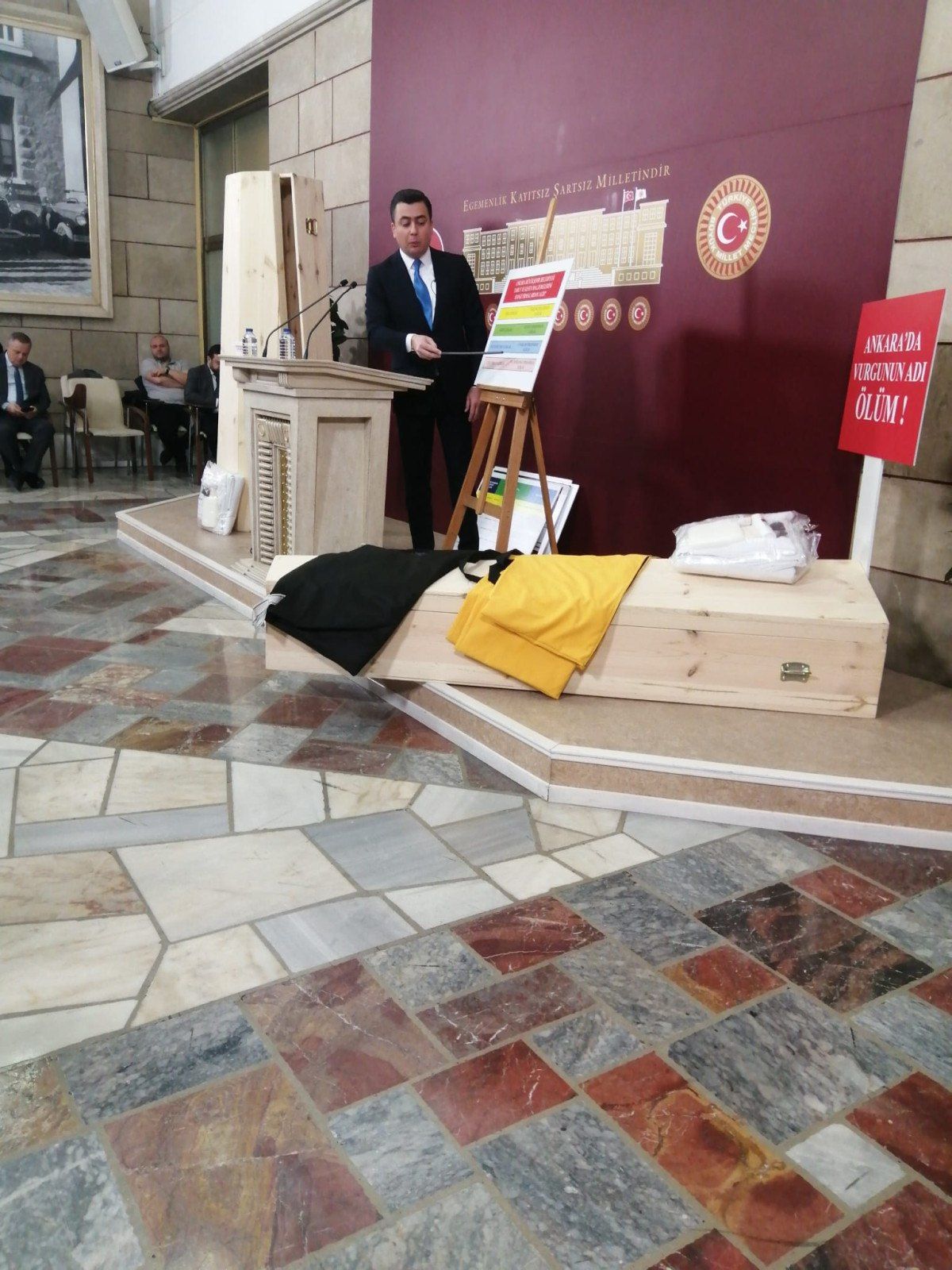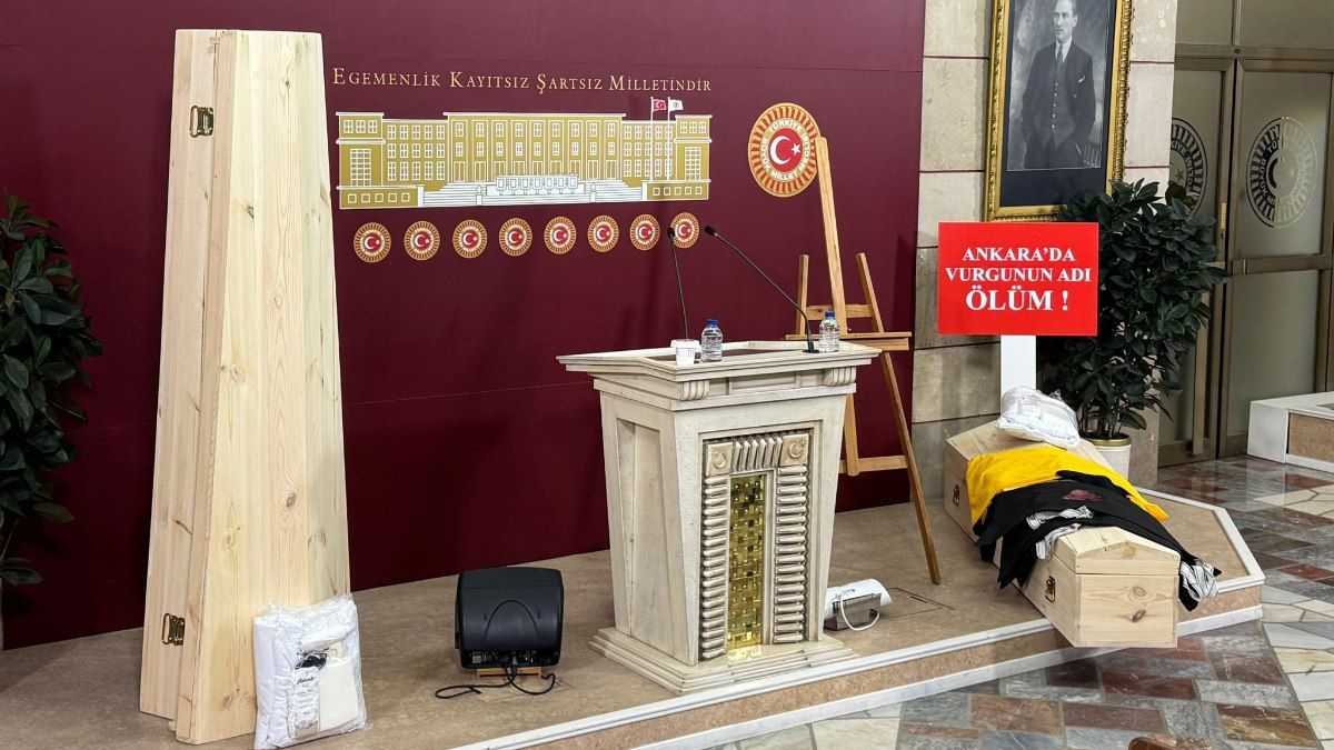 Gökçek, bugün Türkiye Büyük Millet Meclisi’ne (TBMM) tabut, ceset torbaları ve kefenle geldi.