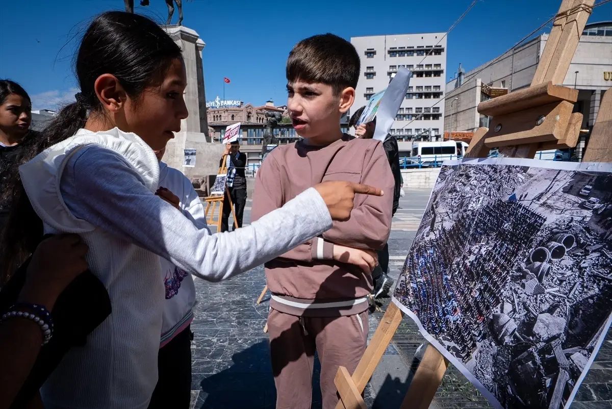 Gazze’de hayatını kaybedenlerin anısına meydanda resim sergisi de açan grup, ellerinde Filistin’e destek dövizleri ve bayraklar taşıdı. Altındağ Gençlik Merkezi öğrencileri ve öğretmenleri de gruba eşlik etti.