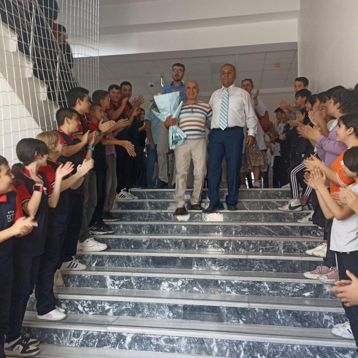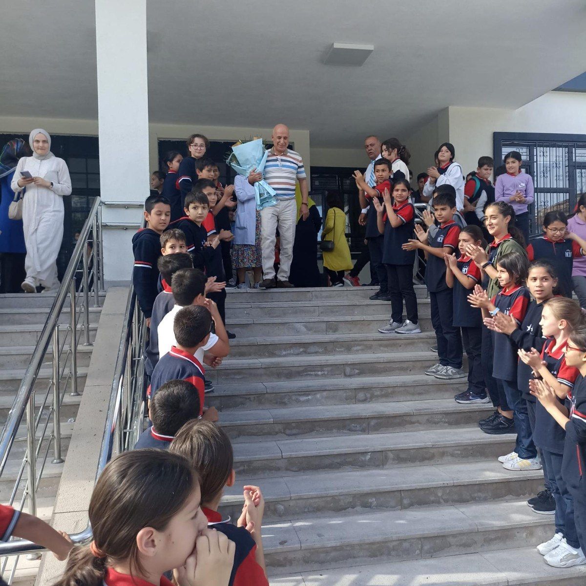 Daha sonra Ünal, alkışlar eşliğinde okuldan uğurlandı.