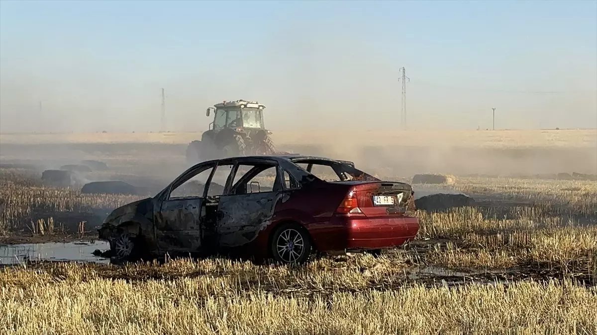 İlçeye bağlı Setik Yaylası’nda dün öğle saatlerinde çıkan yangında, Yasin Meral’ın kullandığı 42 FR 591 plakalı otomobil, balya yapmak üzere girdiği tarlada aniden alev aldı.