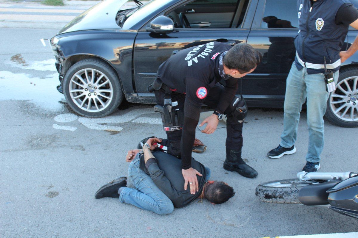 Bunun üzerine bölgeye çok sayıda polis ekibi sevk edildi. Erol T., yaklaşık 4 kilometre süren takibin ardından kavşakta, Doktor Mehmet Vefa Coşkun yönetimindeki 68 ACE 453 plakalı otomobile çarpıp, durabildi. Kazanın ardından polis Erol T.’yi otomobilden indirip ters kelepçe takarak gözaltına aldı.