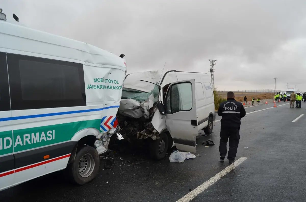 AKSARAY’da otoyolda görevli jandarma ekiplerine ait minibüsü arkadan başka bir minibüs çarptı. Kazada 2 askeri personel şehit oldu, 1 sivil hayatını kaybetti, 3 kişi de yaralandı.