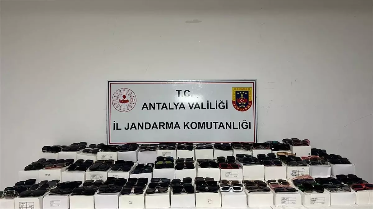 Antalya'nın Aksu ilçesinde jandarma, durdurduğu araçta 1500 kaçak güneş gözlüğü buldu.