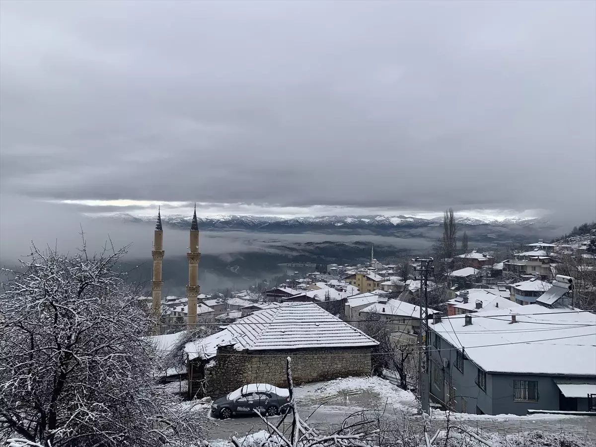 İlçede yoğun kar yağışı nedeniyle bazı mahalleler beyaz örtüyle kaplandı.