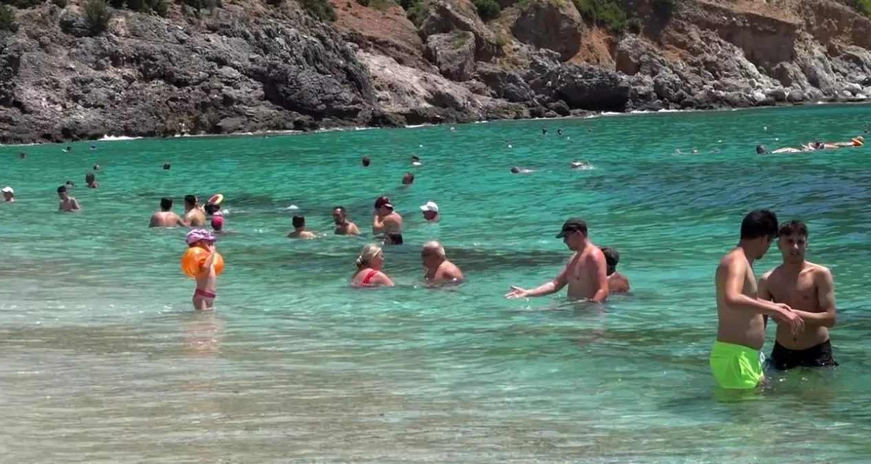 Antalya’nın Alanya ilçesinde aşırı sıcaktan bunalan yerli ve yabancı turistler sahilleri doldurdu.