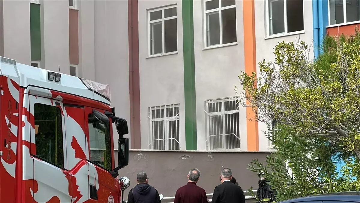 Yangın esnasında öğrenciler öğretmenleri tarafından okul bahçesine çıkartıldı.
