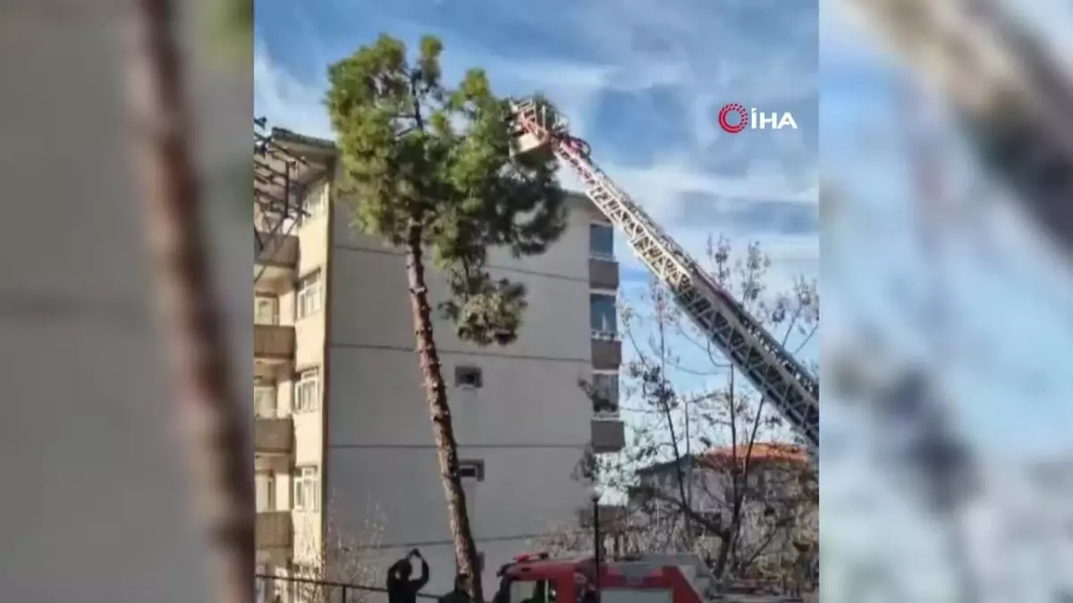 Günlerdir ağaçta mahsur kalan kedi, itfaiyenin çalışmasıyla kurtarıldı