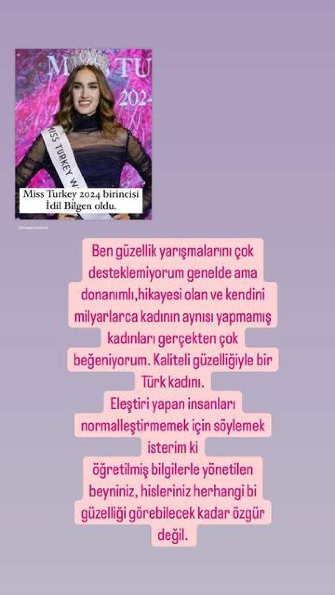 Miss Turkey 2024 birincisi İdil Bilgen, sosyal medyada eleştirildi.