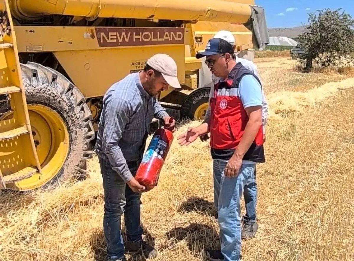 İlçe Tarım ve Orman Müdürlüğü teknik personelince Altıntaş, Pusan, Aykırıkçı ve Kuyucak köylerinde yapılan biçerdöver hasat kontrollerinde özellikle en az 2 adet yangın söndürme tüpü ve su tankeri bulundurulması konusunda uyarı ve bilgilendirmeler yapıldı.