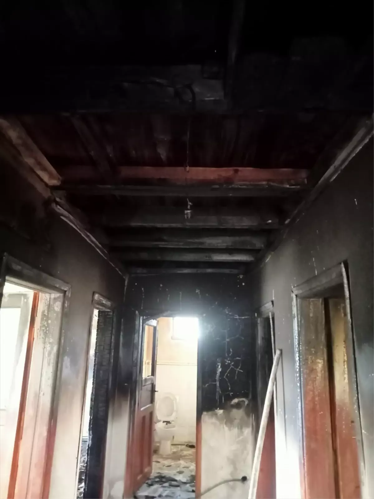 Yangın nedeniyle evde hasar oluştu.