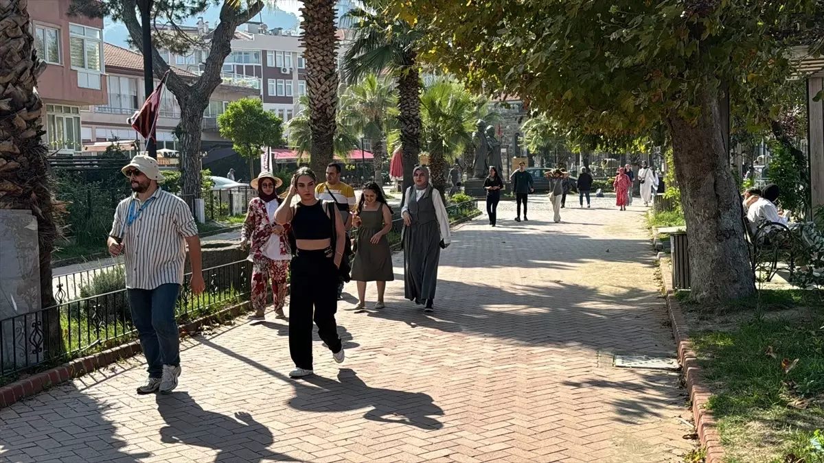 Hava sıcaklığının 28 derece ölçüldüğü ilçeye gelen vatandaşlar, Küçük Liman ve Büyük Liman plajında denize girdi, çay bahçeleri ve parklarda vakit geçirdi.